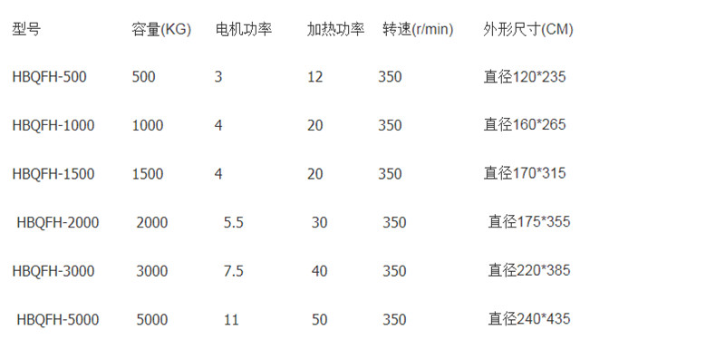 500kg攪拌型干燥機的技術(shù)參數(shù):