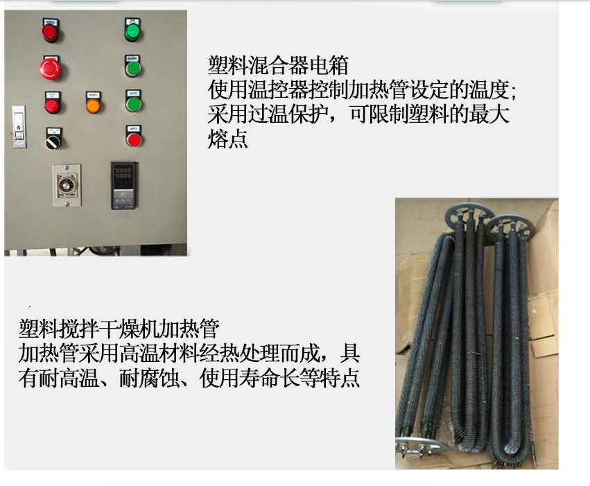8、干燥混合功能二合一,但不需要干燥時,只需將“加熱開關(guān)”及“風機開關(guān)”關(guān)閉,本系列機型即可用于塑料攪拌均化用途,一機二用;